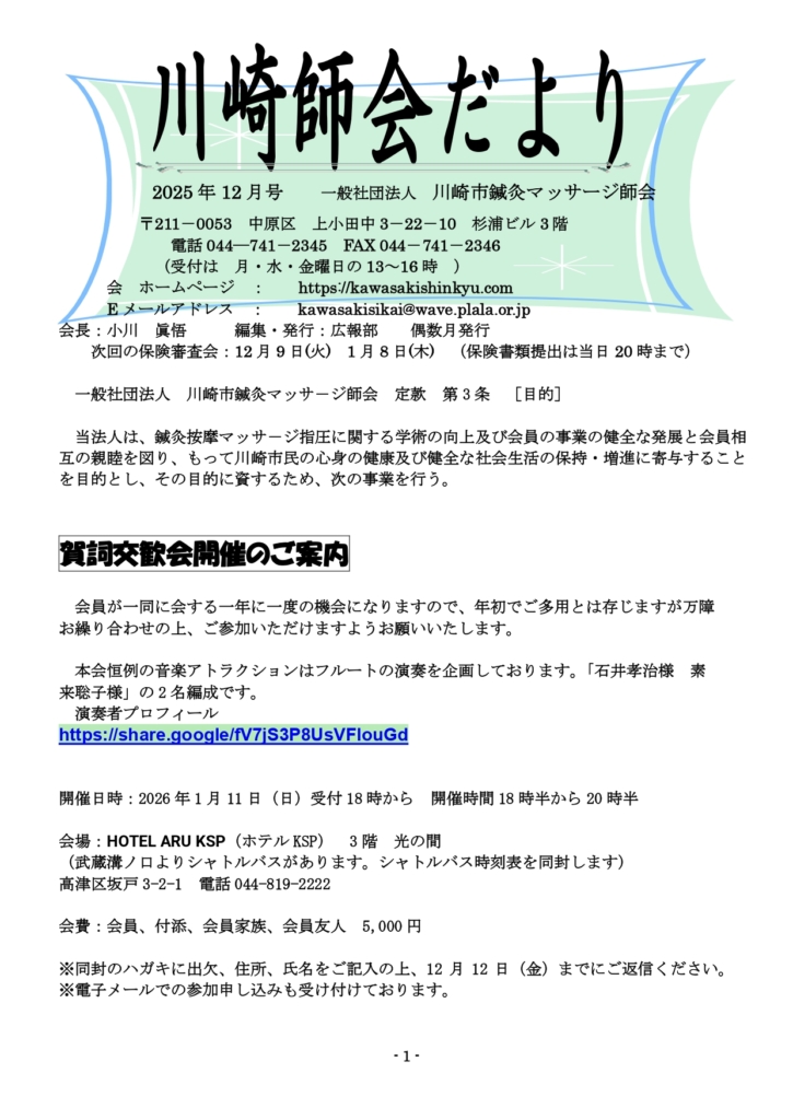 川崎師会だより2025年12月号発行しました
