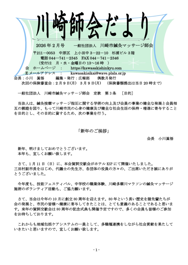 川崎師会だより2026年2月号発行しました